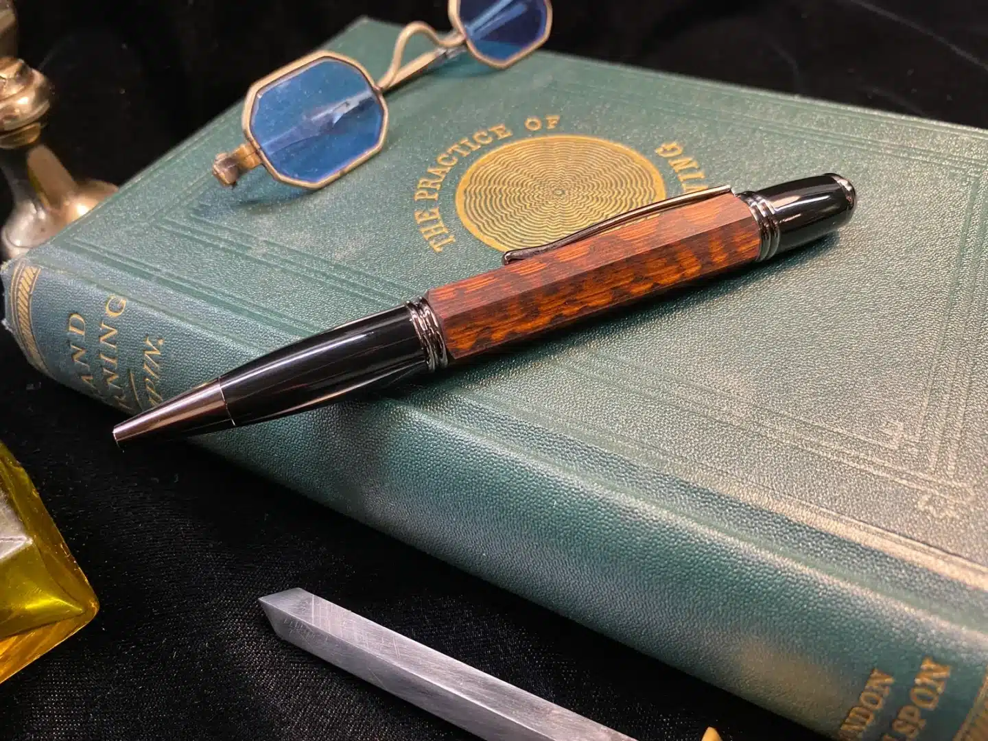 A luthier by trade, Spencer Hamann spends his days in his workshop creating timeless and bespoke masterpieces from exotic materials and restoring fine instruments and antique tools. He also makes really, really gorgeous pens. Full disclosure, I know Harmann in real life, and let me tell you, this man is obsessed with antique tools. I can tell you his pens were turned using a 1946 Logan machine lathe he bought from a retired airplane mechanic, and on his grandfather’s Austrian Unimat lathe from the 1970s. His craftsmanship is the kind of old-world ‘I’ve never even seen a cellphone’ meticulous zen millimeter-by-millimeter work we all dream about in our handcrafted fountain pens.
