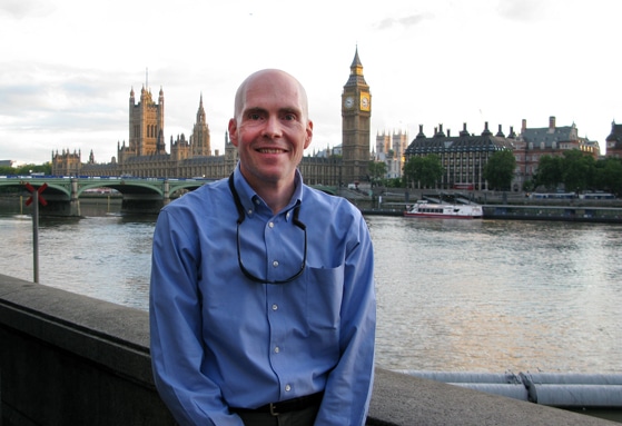 In this interview, we talk with Lee Rosen of the Rosen Law Firm, a family law practice in North Carolina. Lee is widely known for his Divorce Discourse blog and the innovative ways he’s leveraged technology in his virtual practice. He’s an ABA James Keane Award winner for elawyering—and you’re going to want to visit his websites (and YouTube channel) to see how he’s helping clients and bringing in new business. Despite having four firm offices in North Carolina, Lee doesn’t use an office himself. In fact, he’d prefer spending all his time on the road—that’s him in London in the photograph below, and further down taking a dunk in the Chattooga River while rafting in South Carolina.