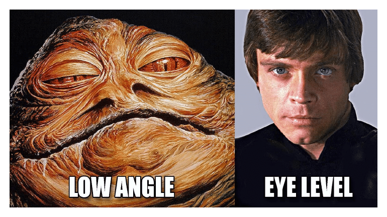 - Set your camera just above eye level. Looking down at the camera makes us look older and overweight. Raising the lens is like an instant diet and can be the difference between Jabba and Luke.