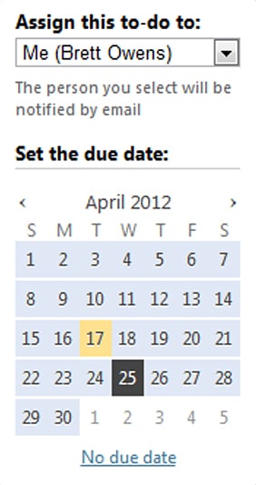 When creating items, I can also give them each a due date, and assign them to a member of my team, or myself, as shown in Figure 3.